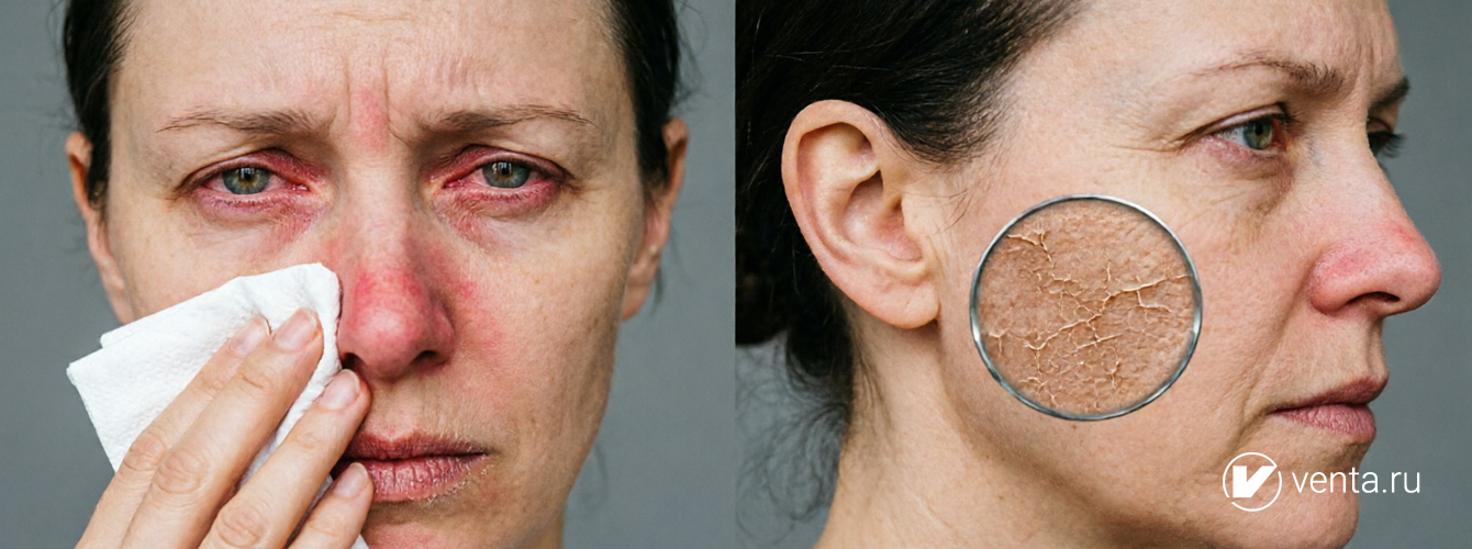 Слизистые оболочки глаз подвержены не меньшей опасности. На их сухость влияет несколько факторов – долгая работа за монитором, просмотр телевизора и активное использование мобильного телефона. Мы реже моргаем, пока смотрим в экран — так устроены органы зрения. Все это усугубляется пересушенным воздухом в помещении и способствует развитию синдрома сухого глаза. Кроме того, кожа вокруг – это самый сухой участок лица, там нет сальных и потовых желез, поэтому влага из эпидермиса уходит очень быстро.